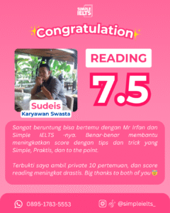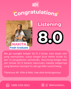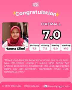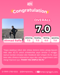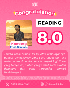 “Gak Perlu Hafal Ribuan Rumus Grammar!” Kami sudah membuang bagian yang gak penting dan merangkum teknik IELTS paling ampuh. Kamu bakal belajar strategi praktis yang langsung to-the-point buat dongkrak skor kamu dalam waktu singkat.